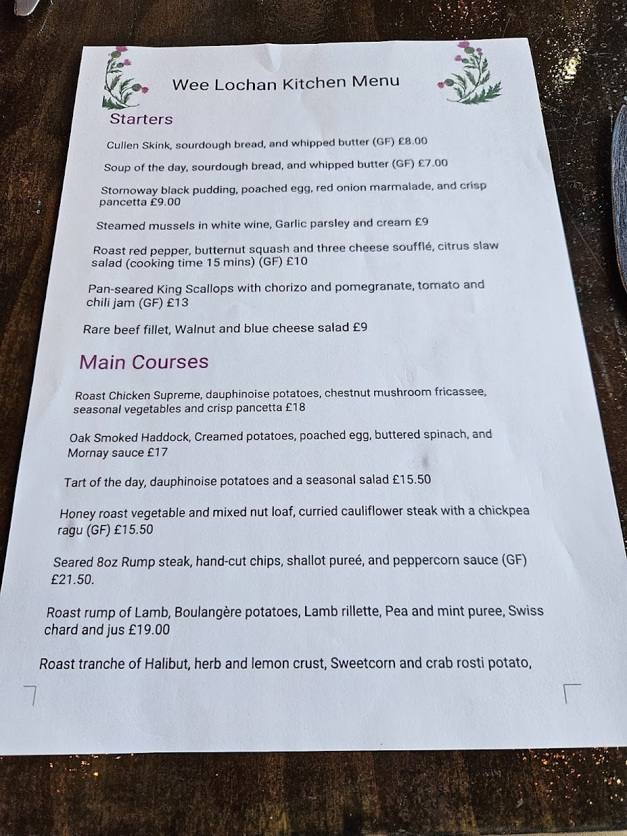 The menu at Wee Lochan Kitchen offers a thoughtfully curated selection that balances classic Scottish dishes with refined, comforting flavors. This cozy café-style setting invites you to enjoy a range of hearty soups, fresh seafood starters, and carefully prepared main courses that feel just right for relaxed lunches, early dinners, or a weekend treat.